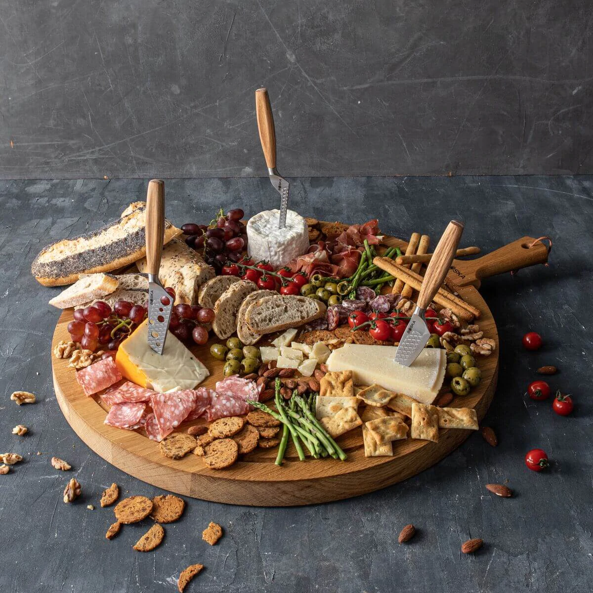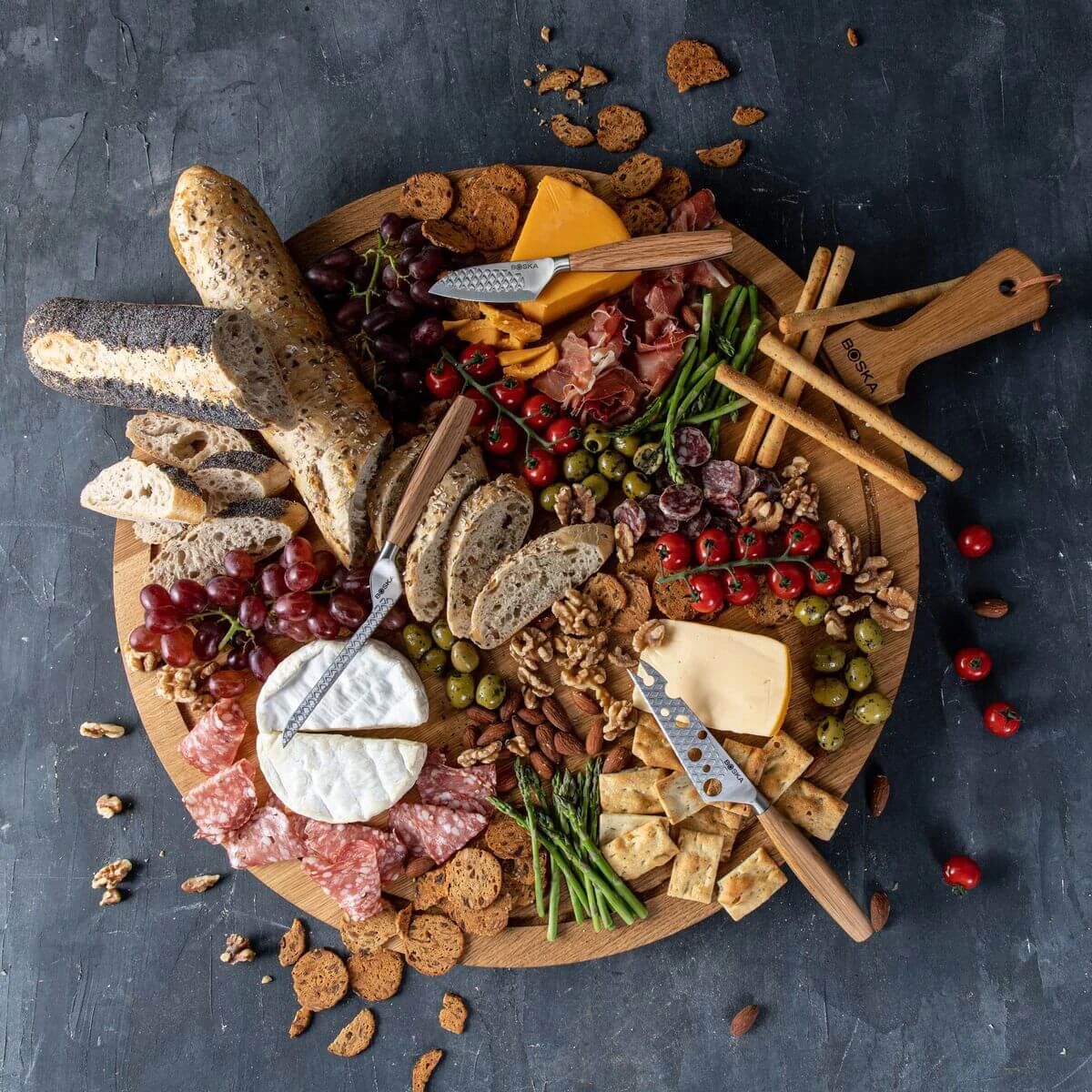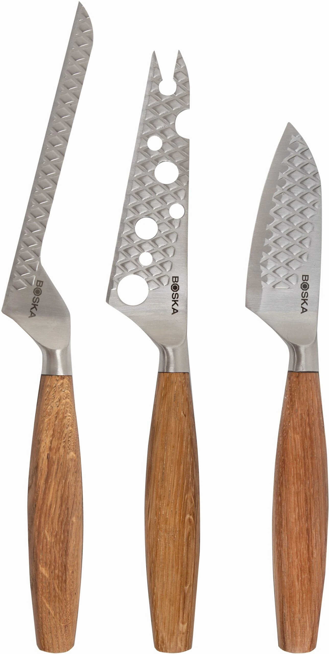 Met de Boska Kaasmessenset Oslo+ snijd je elke soort kaas die je maar wil. Met deze set heb je alle messen die nodig zijn voor het serveren van een heerlijke kaasplank. Van een smeuïge brie tot een lang gerijpte Parmezaanse kaas: je krijgt elk type kaas klein. Elk kaasmes is gemaakt van roestvrijstaal en heeft een authentiek eikenhouten handvat. Deze messen zijn dus zowel stijlvol als praktisch!