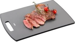 De Gefu Snijplank Levoro 38 x 26 cm is een ideale grote snijplank voor elke keuken. De snijplank van kunststof is gemaakt met anti-slip aan de buitenkant en hij glijdt dus niet weg. Het snijoppervlak is mesvriendelijk en je krijgt daardoor geen voegen of strepen na het snijden. Op de buitenkant zit een anti-microbiële laag die ervoor zorgt dat deze plank altijd hygiënisch blijft. Na gebruik maak je hem gemakkelijk schoon in de vaatwasser.