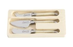 Met deze kaasmessenset van Laguiole Style de Vie presenteert u uw kaasplankje in stijl. De set bestaat uit drie kaasmessen voor verschillende kaassoorten. De kaasmessenset wordt geleverd in een houten tray en alle messen zijn voorzien van een glad lemmet van 1.2 mm. Daarnaast zijn de messen vaatwasserbestendig.