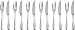 De 12-delige set bestaat uit 6 steakvorken en 6 scherpe steakmessen met de volgende afmetingen: