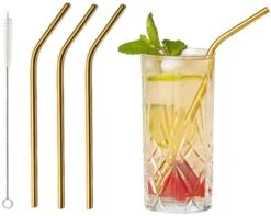 Zijn kartonnen en plastic rietjes die slap worden ook zo’n ergernis voor jou? Dat snappen wij helemaal. Met deze herbruikbare Cookinglife rietjes is een kartonnen smaak verleden tijd! Geniet optimaal van jouw drankje met deze gouden rietjes gemaakt van RVS. Deze rietjes van 21.5 cm zijn gebogen en daardoor ook geschikt voor het lagere glaswerk. De set bestaat uit 4 stuks.