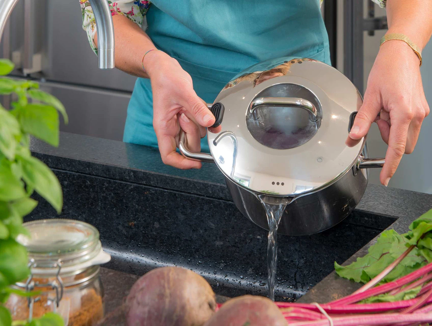 Met deze kookpan uit de Sola Zuma collectie haal jij een pan van hoge kwaliteit in huis! Deze kookpan is erg geschikt voor het bereiden van rijst, aardappelen of heerlijke groenten. De pan is gemaakt van hoogwaardig roestvrij staal en heeft een diameter van 24 centimeter. Hij wordt geleverd inclusief bijpassend deksel, dat is voorzien van twee soft-grip pads. Ook beschikt deze pan over een afgietsysteem, waardoor het afgieten van ingrediënten erg gemakkelijk gaat. De pan is voorzien van een capsulebodem. Hierdoor kan hij niet alleen worden gebruikt bij koken op gas, maar ook op elektrische, keramische, halogene en inductie kookplaten. Aan de binnenkant van de pan zijn inhoudsmaten aangegeven zodat het afmeten van ingrediënten gemakkelijk gaat. Na gebruik is hij geschikt om te reinigen in de vaatwasser.