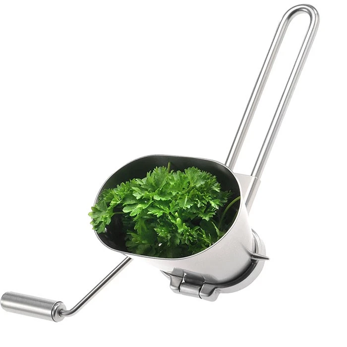 Peterselie smaakt pas echt lekker als je het met een goede peterseliemolen vermaalt. Je ruikt meteen het verschil als je de peterselie vermaalt tot een heerlijke toevoeging aan je gerecht. Deze roestvrijstalen peterseliemolen van Westmark is een echte aanrader om cadeau te geven aan liefhebbers van zelfgemaakte soep of kruidenboter. De peterseliemolen is voorzien van scherpe roestvrijstalen tanden. De kruidmolen is makkelijk uit elkaar te halen om te reinigen.